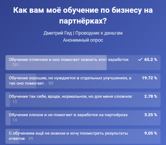 На этом скриншоте результаты проведенного мной опроса среди учеников и подписчиков.